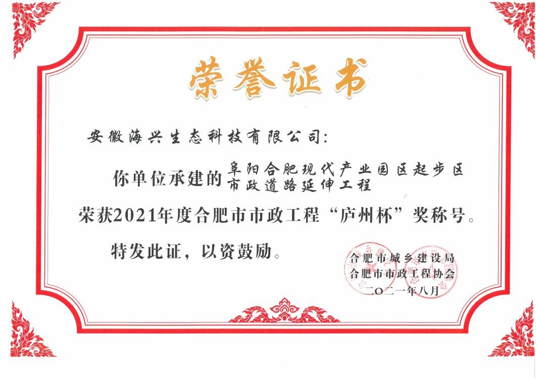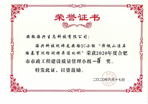 2020年度合肥市市政工程建设质量管理小组一等奖