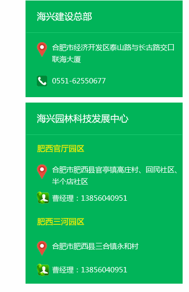 海兴建设:0551-62550677 海兴园林科技发展中心:13856040951 邮编:231202