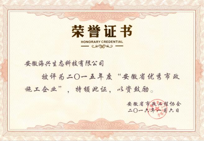 2015年度省级优秀企业