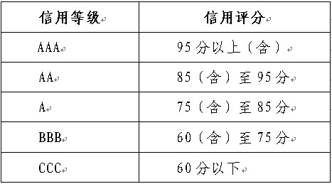 AAA级,信用很好,表示受信单位在安徽省水利工程建设领域诚信度很高;AA级,信用好,表示受信单位在安徽省水利工程建设领域诚信度高;A级,信用较好,表示受信单位在安徽省水利工程建设领域诚信度较好,为基本级;BBB级,信用一般,表示受信单位在安徽省水利工程建设领域诚信度一般;CCC级,信用差,表示受信单位在安徽省水利工程建设领域诚信度差,失信。