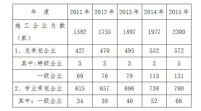 表1 “十二五”期间合肥市建筑业企业资质情况
