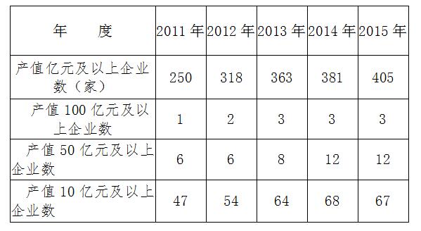“十二五”期间,我市建筑产业集中度不断提高,组织结构进一步优化。2011年,我市产值亿元及以上建筑业企业数只有250家,2015年增加到405家,其中,产值100亿元及以上企业数从1家增加到3家,产值50亿元及以上企业从6家增加到12家(表2)。