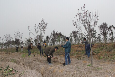 十一月的深秋是那样的干净清朗,云朵里没有一丝秋风凉意,街道上没有漫天飞舞的落叶,午后秋日特有的阳光格外的安宁和温暖,让人内心荡漾着舒适逸致,在这情怀满满的季节,公司经营部全体人员在施经理组织带队下,前往海兴.官亭园林科技示范园植树。