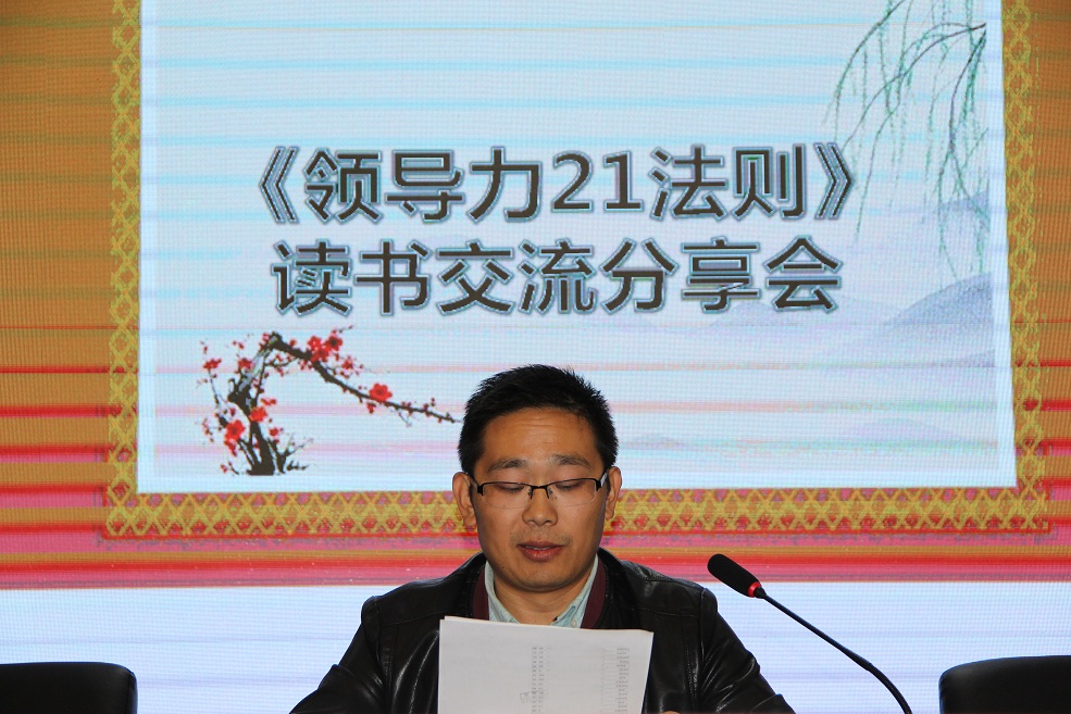 2017年10月14日下午,在集团总部五楼培训中心,由集团发展战略中心人才资源部组织了一场大型的读书分享活动---《领导力21法则》读书交流分享会,《领导力21法则》是全球第一领导力大师---麦克斯维尔博士40年研究的集大成之作。书中每一条法则都有相应的事例进行阐述,通熟易懂,吸引了公司全员都进行了研读。