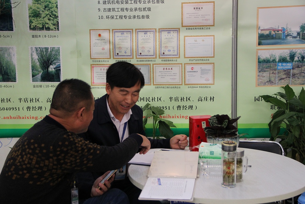 我公司投资建设的“中国·中部乡土树精品园”是合肥市本土企业中乡土乔木树种最多、标准最高、管理规范的苗木园区,在企业标准展区的展会现场,我公司展现了创精品园区的企业风采和主动、热情、周到的服务品质。展会期间,集团公司董事长曹张伯同志携园林板块负责人曹总、施总等人到场,对我公司的展台参观指导,并对展销会上同行企业展览的优质苗木进行走访和取经。