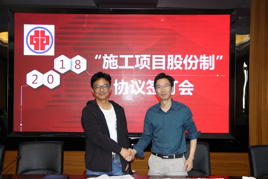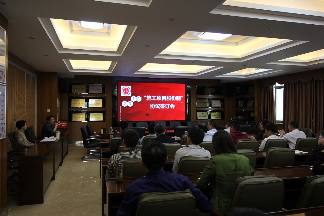 4月20日下午,在集团公司5楼会议室举行了“施工项目股份制”协议签订会。会议由项目投资运营中心总经理周跃主持,集团相关领导和全体股份制项目股东参会。