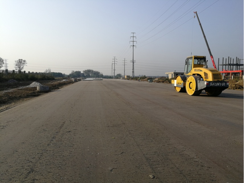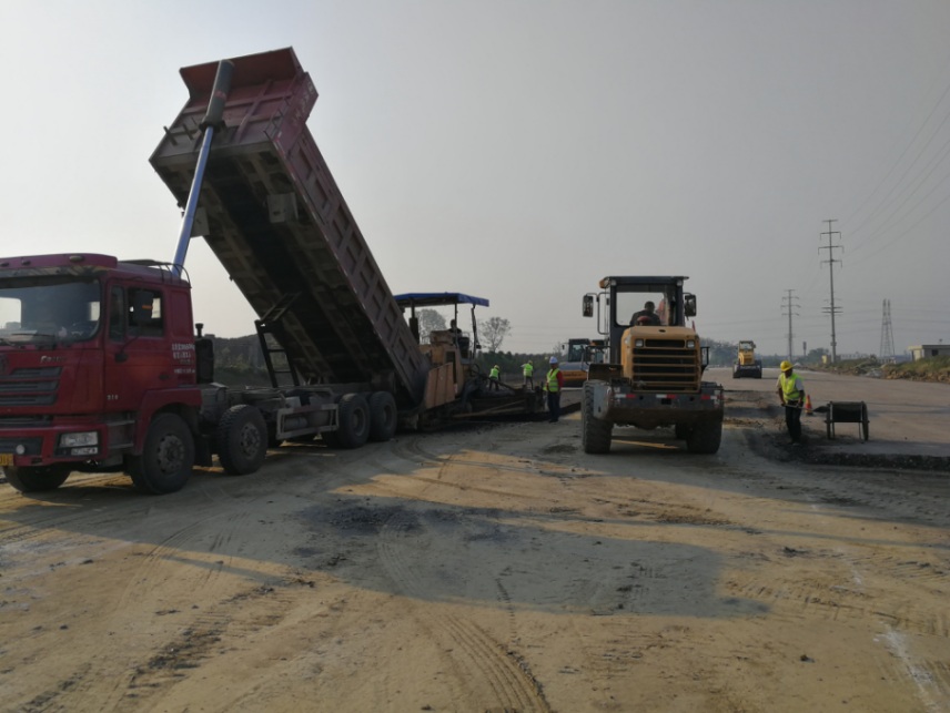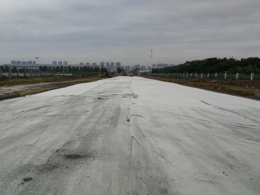 本项目自开工以来经历了土方禁运、征地拆迁等等问题,造成工期的滞后。8月以来影响项目施工的问题基本得到解决,项目部及时制定措施,抢抓一切施工窗口,终于在9月中旬开始三条路的水泥稳定碎石结构层施工,且已基本完成了第一层的铺设施工。水稳层是道路施工质量的关键,为确保施工质量,项目部全员上岗,明确分工。从料场、运输、摊铺、碾压到养护都有专人负责,各司其职。